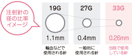 麻酔注入時に電気麻酔注射器を使用する事で、痛みを与えずにゆっくり注入できるようにしております。また緊張の強い患者様には笑気ガスを使用することで、緊張や痛みをやわらげることが可能です。